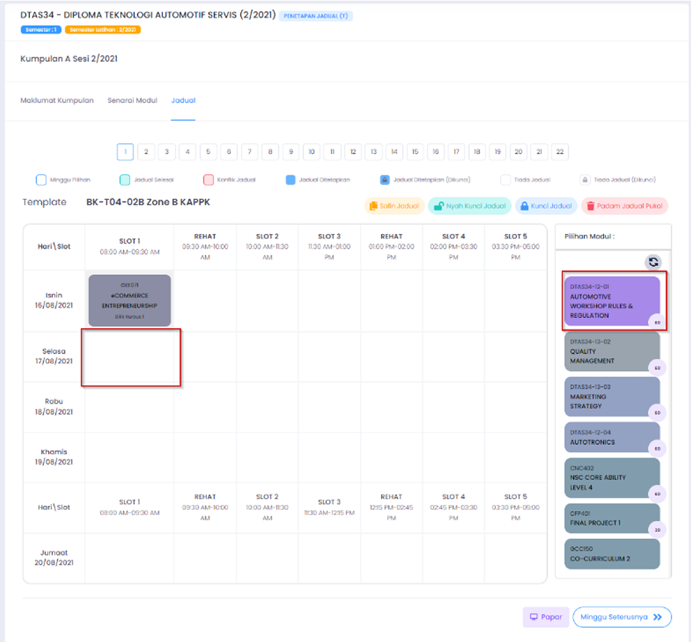 Sistem Pengurusan Pembelajaran (LMS) ialah modul teras dalam JTM Integrated Management System (JIMS) yang dibangunkan bagi menggantikan sistem TMS terdahulu untuk mendigitalkan pengurusan latihan pelajar Jabatan Tenaga Manusia (JTM) secara bersepadu. Sistem ini berfungsi sebagai platform omnichannel yang boleh diakses melalui web dan peranti mudah alih, menyokong pembelajaran hibrid termasuk kelas maya serta integrasi dengan agensi luar. LMS merangkumi fungsi utama seperti pengurusan kalendar dan jadual latihan, pendaftaran modul, perekodan kehadiran melalui kod QR, pengurusan bahan dan kerja kursus, serta penyediaan dan pengesahan Rekod Pelan Pembelajaran (RPP) secara digital bagi meningkatkan kecekapan operasi akademik.
