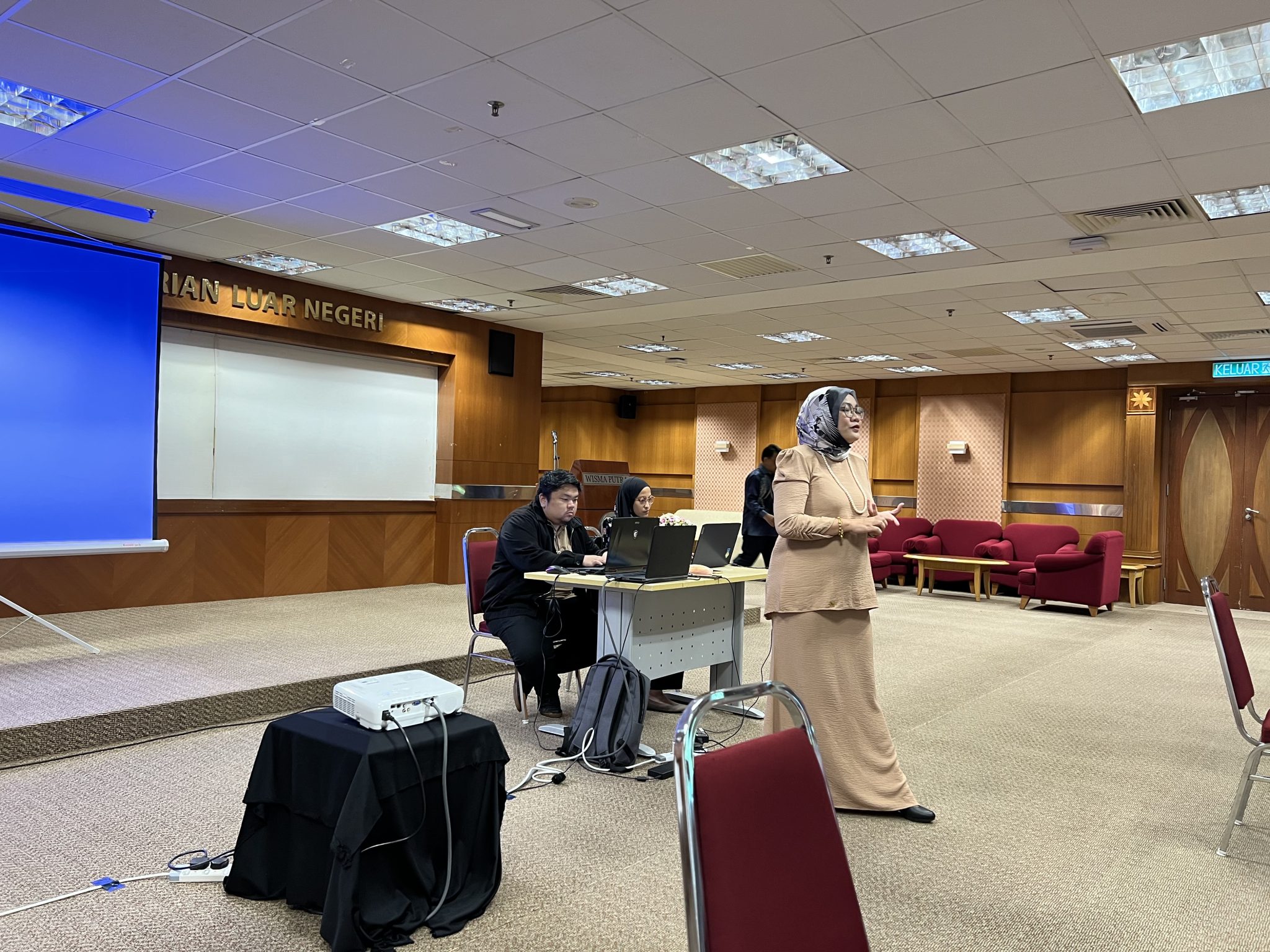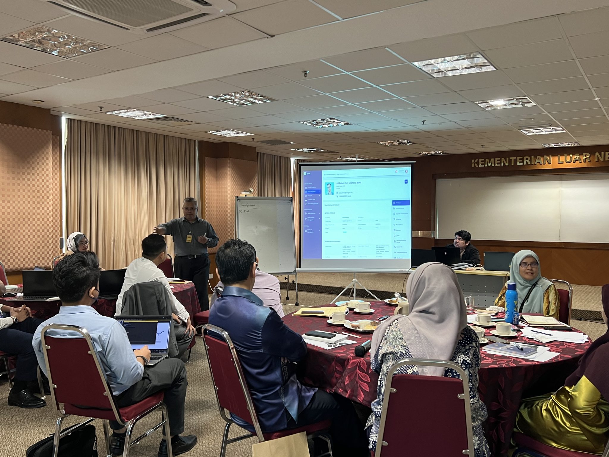 Kursus Asas Figma Kementerian Luar Negeri (KLN) merupakan inisiatif latihan strategik yang bertujuan memperkasakan kakitangan dengan kemahiran reka bentuk antaramuka digital bagi menterjemahkan keperluan sistem ke dalam representasi visual yang jelas dan berstruktur. Melalui kursus ini, peserta didedahkan kepada penggunaan asas perisian Figma untuk membangunkan papan cerita (storyboard) dan prototaip interaktif, sekali gus membolehkan visualisasi aliran kerja serta fungsi sistem dibuat dengan lebih tepat sebelum fasa pembangunan bermula, seterusnya meningkatkan kecekapan komunikasi antara pemilik projek dan pasukan teknikal bagi memastikan penghasilan sistem yang berkualiti dan berkesan.